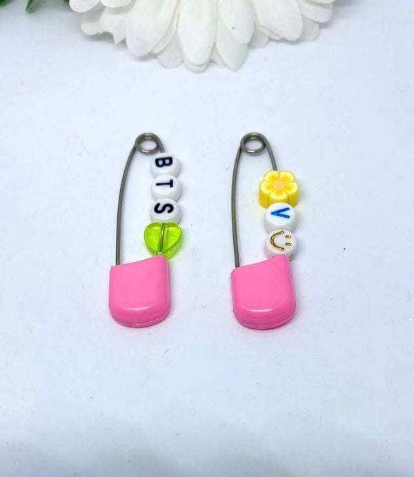 Get ready to show off your love for BTS with these handmade Kpop interchange earrings. Featuring safety pins with beads, these earrings are inspired by J-hope and all other members of the popular Kpop group. The best part? By only changing the safety pins, you can alternate between different members for a unique earring every time. The handy hook closures make it easy to change, providing a stylish accessory that you can showcase with any outfit. Whether you're a die-hard BTS fan or simply appreciate their music, these earrings are a must-have for any Kpop enthusiast.