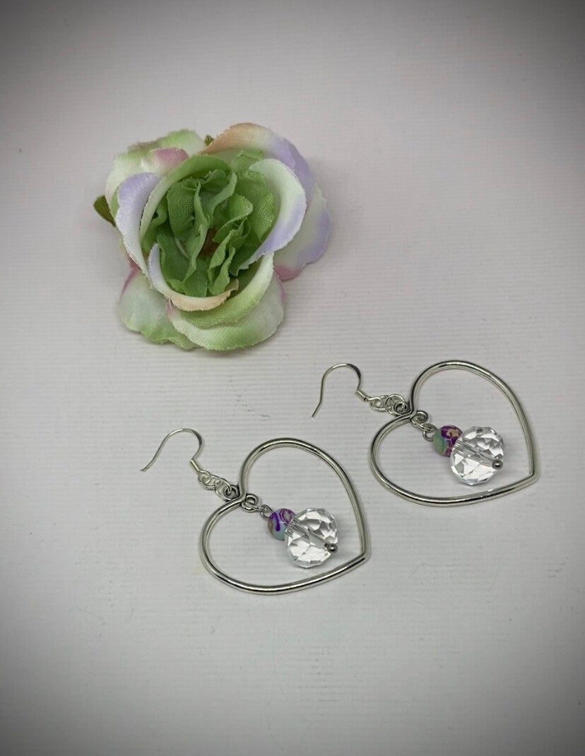 These handmade earrings feature 925 sterling silver hooks and a heart-shaped charm embellished with a glass crystal and a Jasper bead in the center. The beautiful combination of the gemstone and the crystal adds a touch of elegance and sophistication.